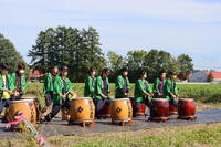 この日はオープニングセレモニーとして、関係団体・地元小学生などの地域住民にも集まっていただきました。また本校寮生はかしわ太鼓保存会による指導を受け太鼓披露のほか、本校生産物である馬鈴薯を使ったフライドポテトの提供などが行われました。