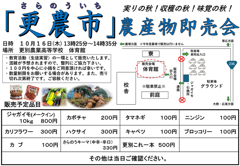 ・生徒実習の教育活動の一環として販売しますので、ご理解ご協力をお願いします。